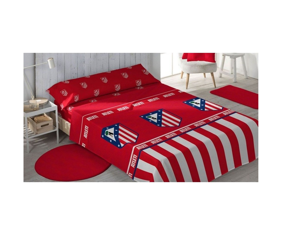 Juego de sábanas de invierno con 3/piezas compuesto por: Encimera, bajera y almohada, tejido de coralina con diseño del Atlético de Madrid.