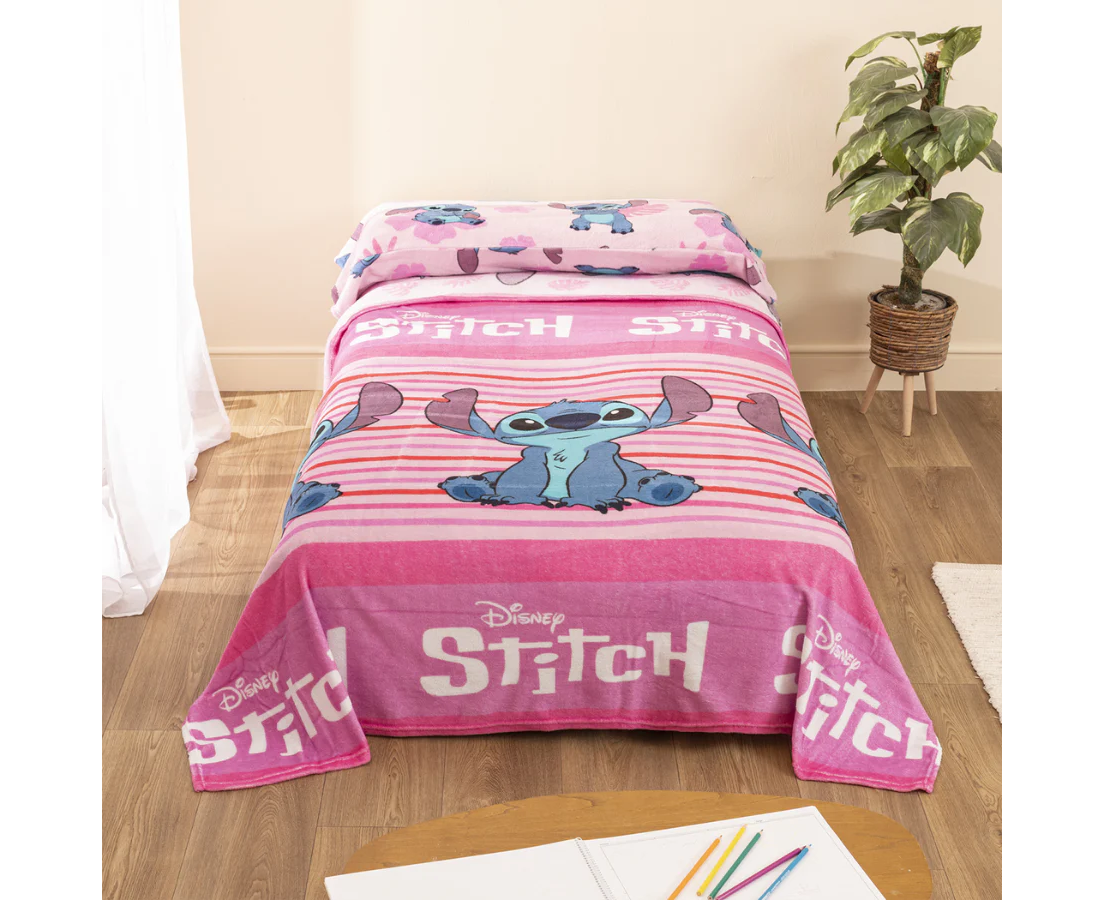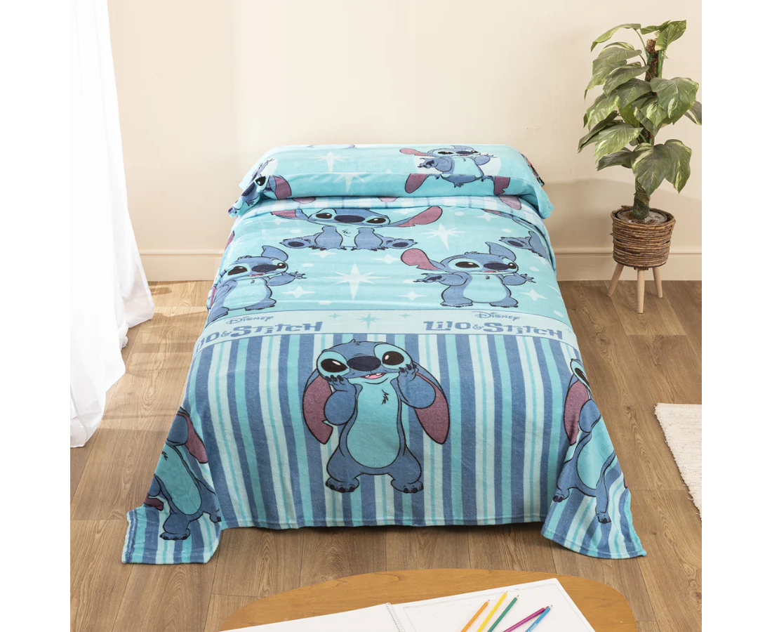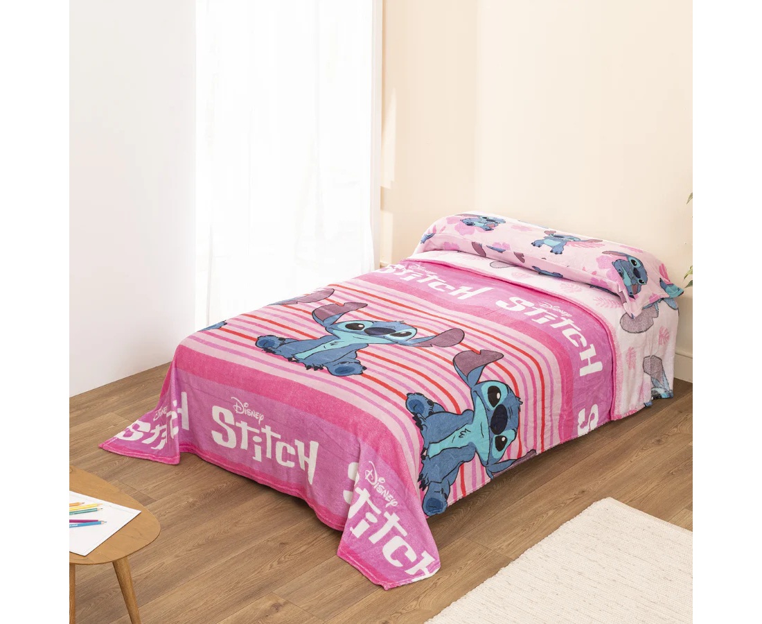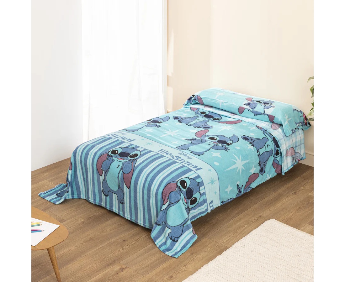 Juego de sábanas de invierno con 3/piezas compuesto por: Encimera, bajera y almohada, tejido de coralina con diseño de Lilo & Stitch