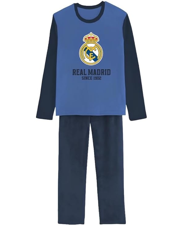 Pijama oficial de invierno del Real Madrid, confeccionado en tejido coralina muy suave y cálido, ideal para las noches frías de invierno. Diseño exclusivo con el escudo del Real Madrid.
